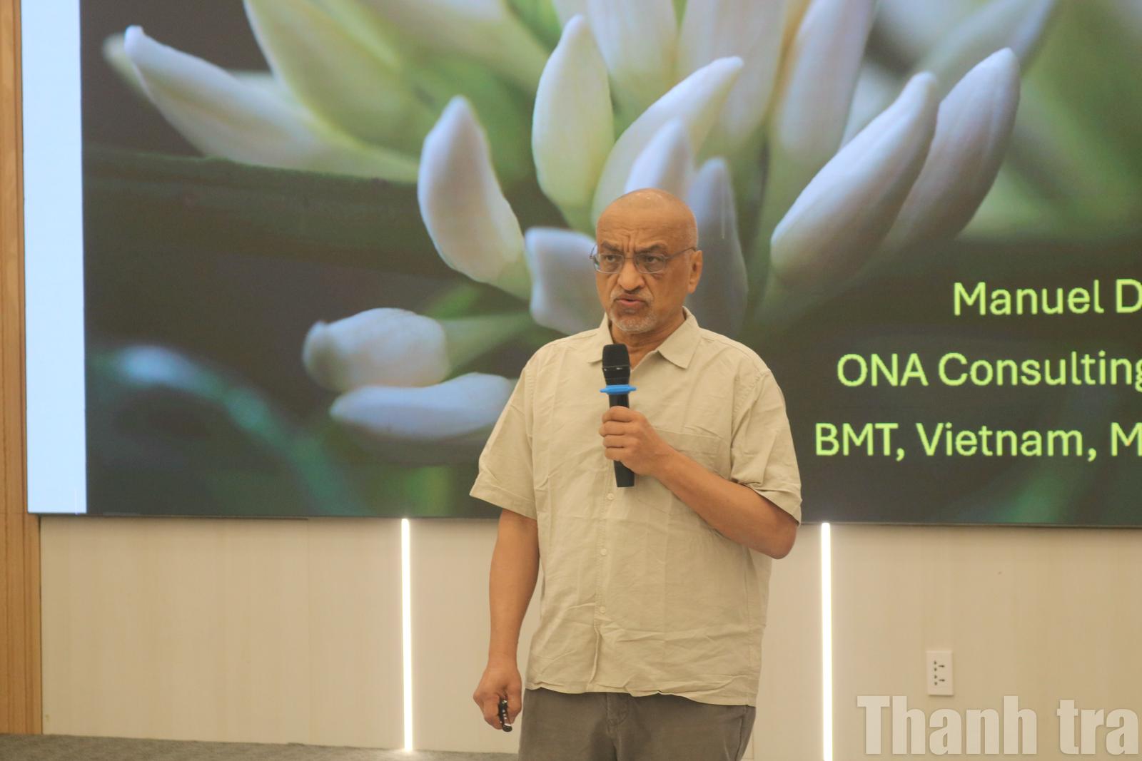 Dr. Manuel Diaz, chuyên gia cà phê Mexico chia sẻ quan điểm về việc xây dựng hệ thống đánh giá chất lượng khoa học, minh bạch cho cà phê Robusta. Ảnh: NM